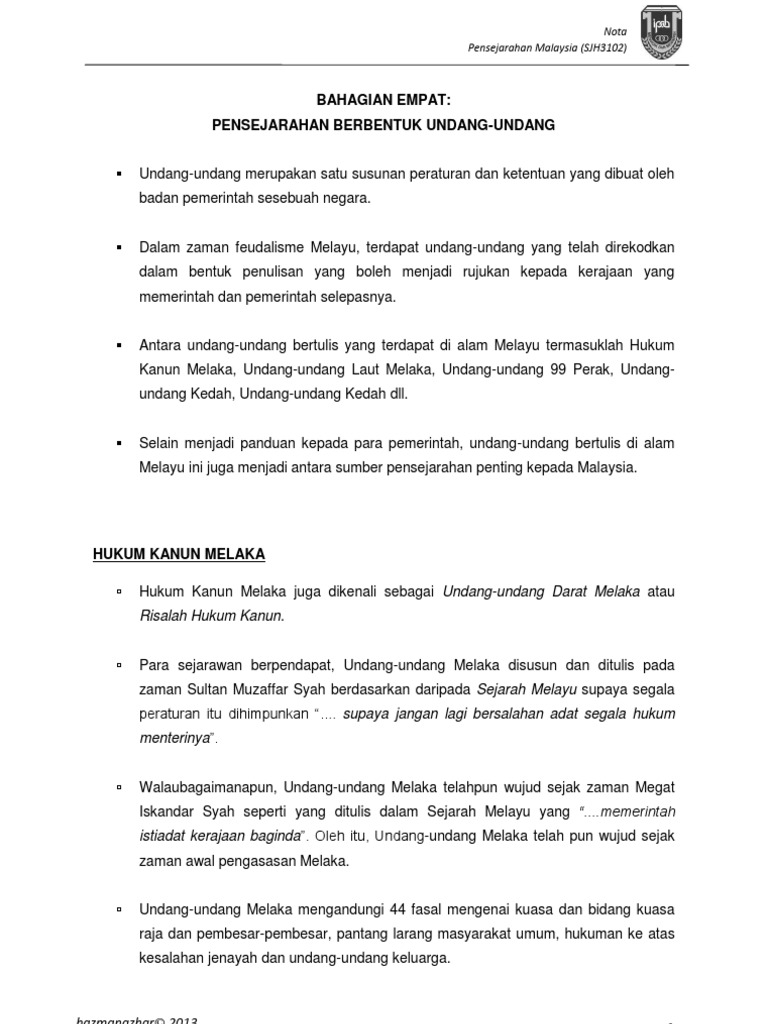 Nota Sjh3102 Bab 4 Pensejarahan Berbentuk Undang Undang